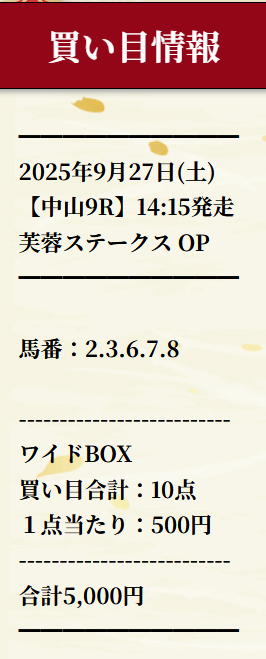 9月27日(土)の芙蓉S無料予想で