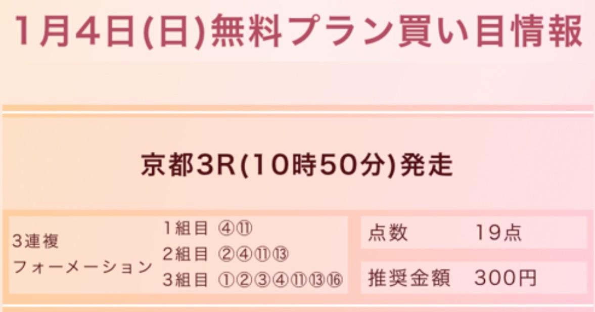 さっそく新年1発目4日(日)の無料予想で競馬QUEENで勝利を手に入れました!
