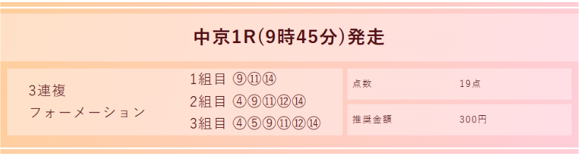 21日(日)中京1Rの無料予想で万馬券的中!