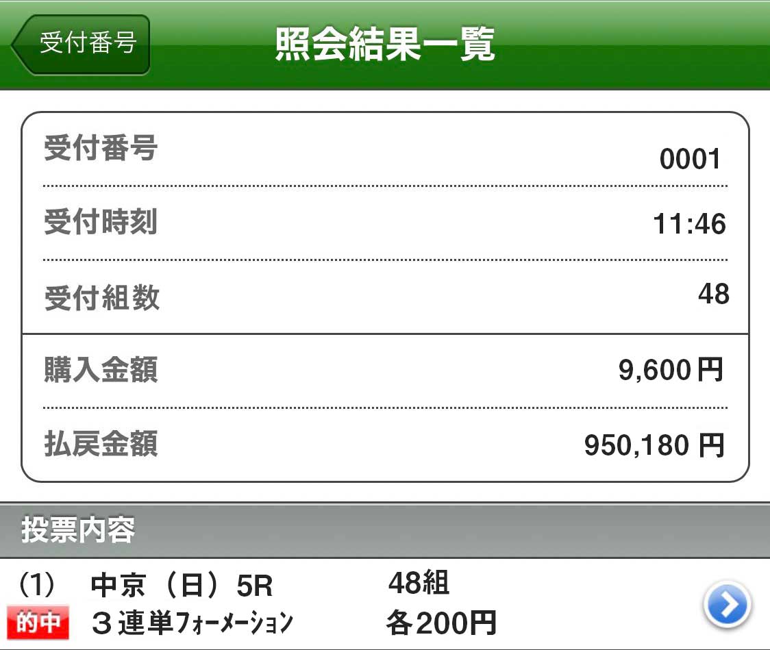 馬券代5,700円のみでこの払戻しは最高!