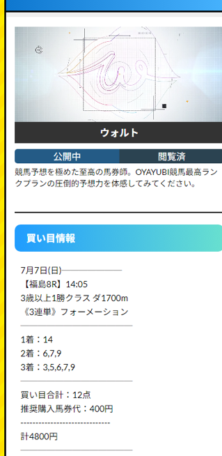どのくらいあたるのか気になてたのでウォルトにしてみたのですがこの予想で45万いきました・・・!!