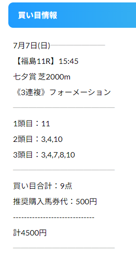 今回も七夕賞しっかり買い目点数9点で的中させていて